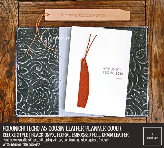 R.atelier Hobonichi Cousin A5 Leather Folio | Floral Embossed Black Onyx