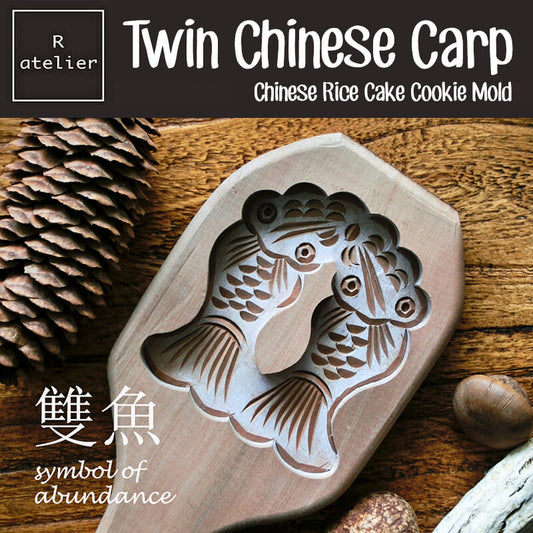 Twin Chinese Carps Double Happiness Symbol of Wealth Chinese Rice Cake Cookie Mold
