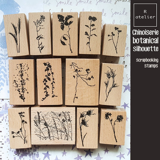 Chinoiserie Botanical Silhouette Scrapbooking Wooden Stamp