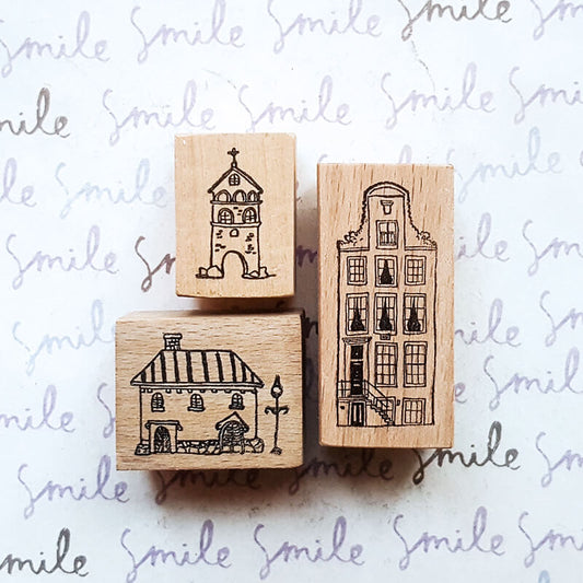 Townhomes Brownstones Houses Scrapbooking Wooden Stamp