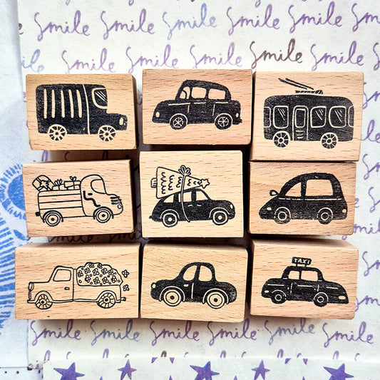 Whimsical Car Truck Transport Scrapbooking Wooden Stamps