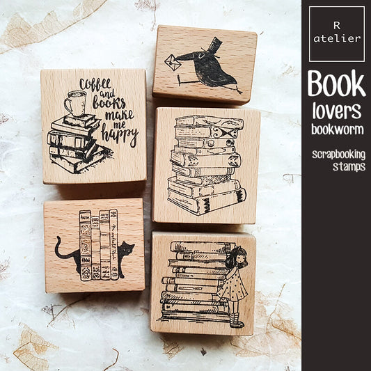Book Lovers Bookworm Literary Scrapbooking Wooden Stamp