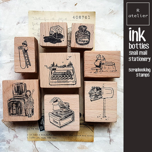 Ink Bottle Snail Mail Stationery Scrapbooking Wooden Stamp