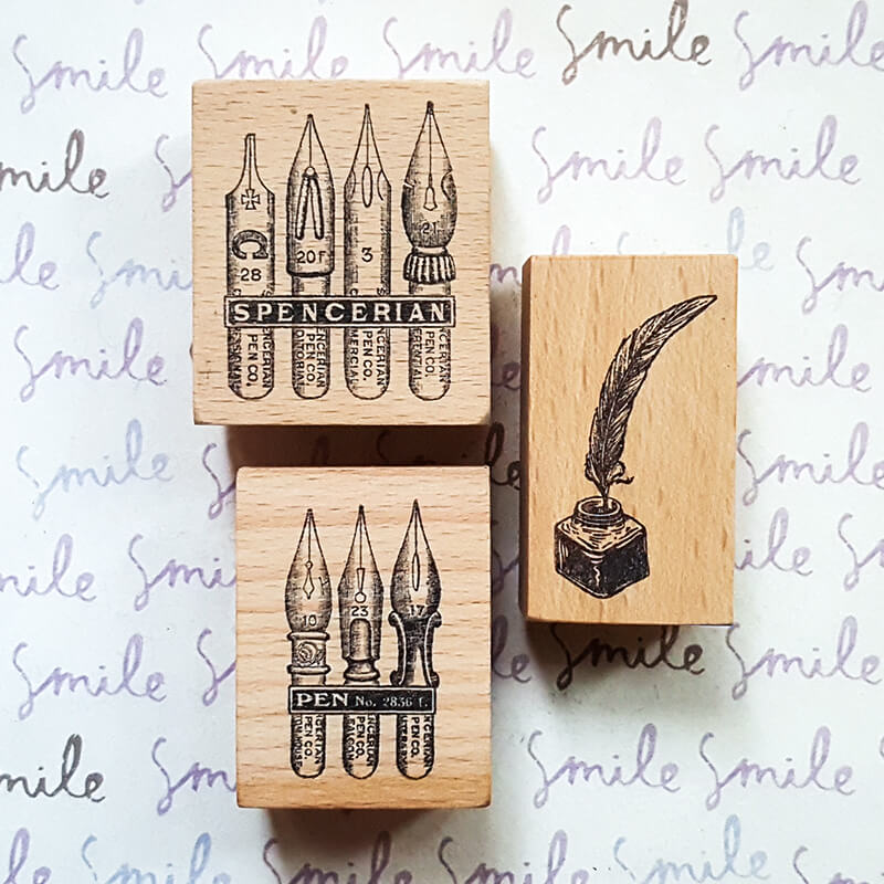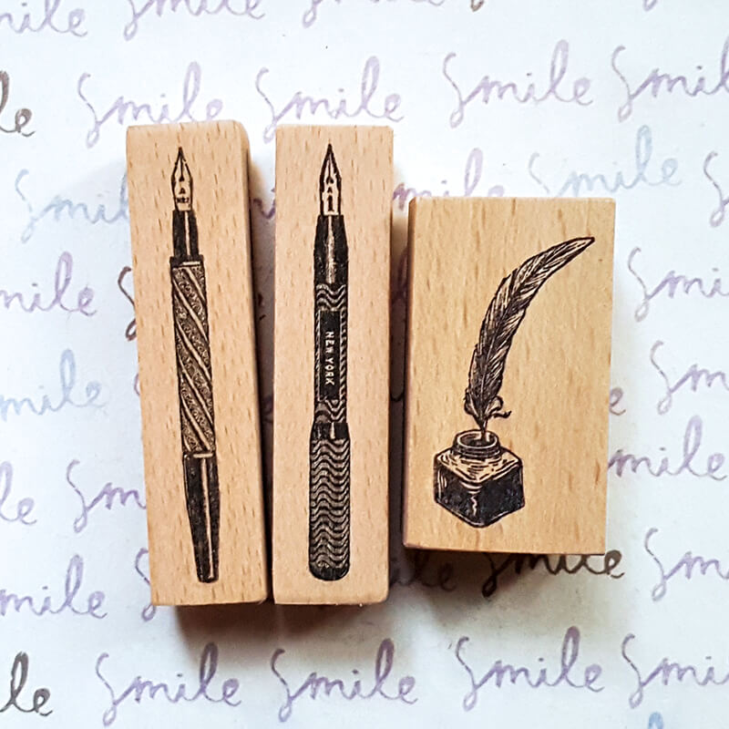 Fountain Quill Pens Literary Writing Ephemera Scrapbooking Wooden Stamp