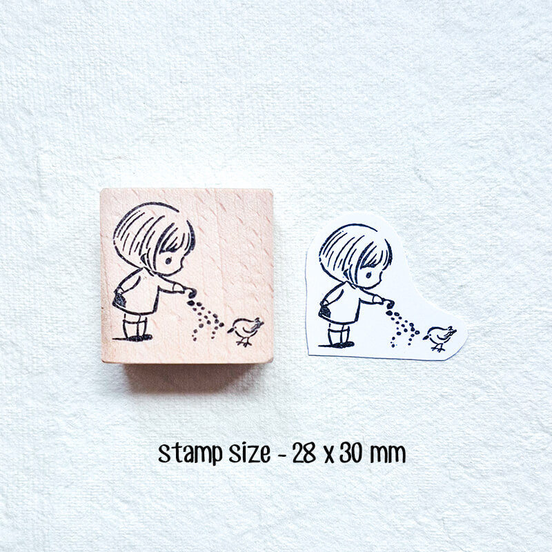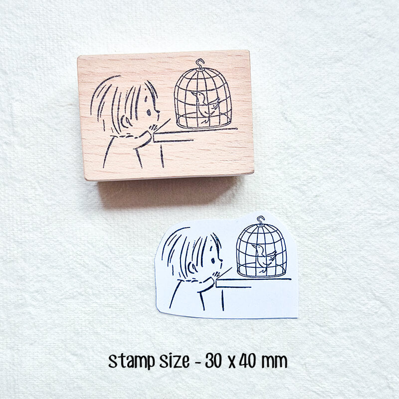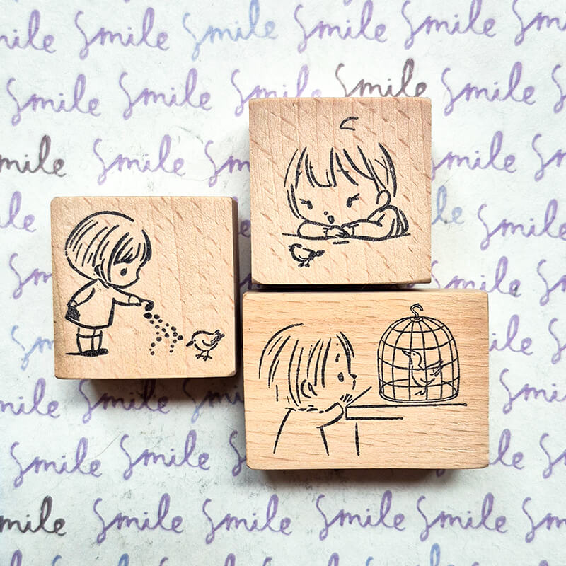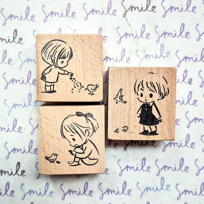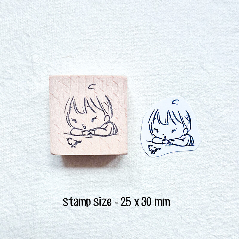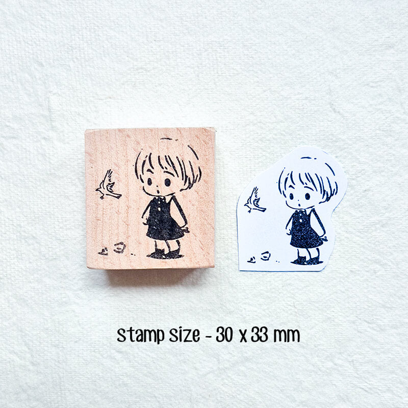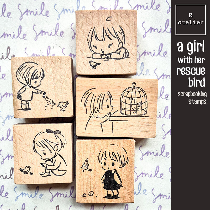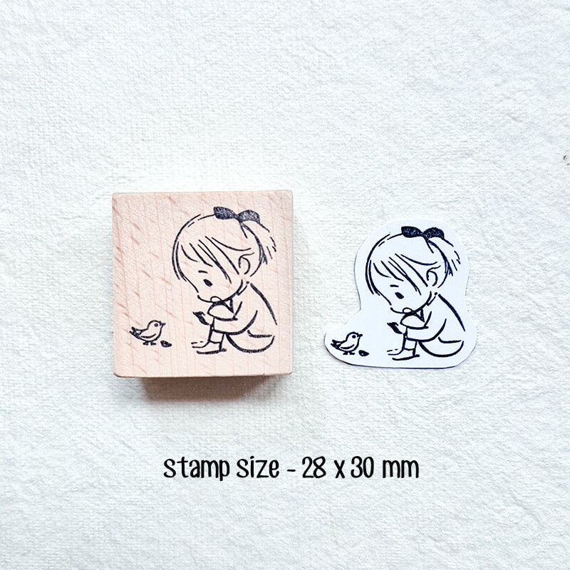 Kawaii Girl Bird Rescue Daily Life Diary Scrapbooking Wooden Stamp