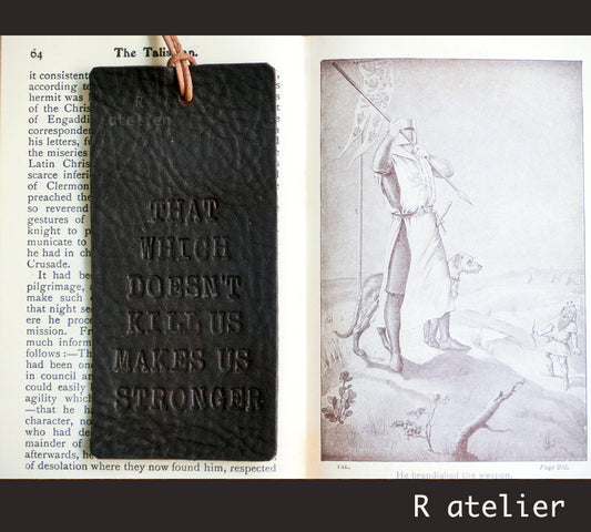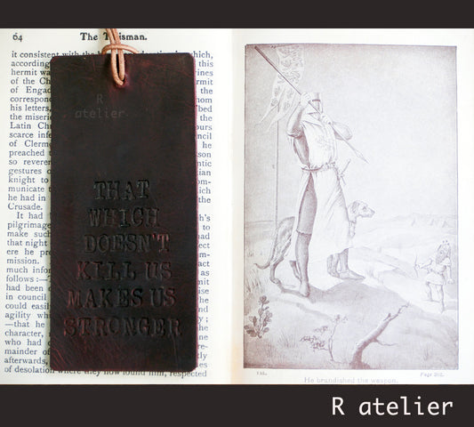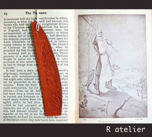 Our leather bookmarks are handcrafted using one-of-a-kind leather making every piece special and unique. We employ traditional hand-deboss technique where the letters are heated & stamped deeply into the leather surface that will certainly leave an unforgettable impression with age. The perfect gift for the avid readers!